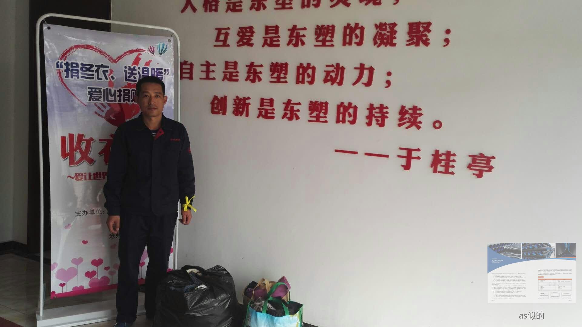 服裝將由滄州博愛(ài)愛(ài)心社組織聯(lián)系相關(guān)部門(mén),送到需要的人手里。潔通塑料也將持續(xù)關(guān)注所募集衣物的終去向,志愿者們中午不休息整理衣物,十九大正在隆重召開(kāi),習(xí)很大在報(bào)告中也指出:始終牽掛困難群眾,而潔通塑料今天的行動(dòng)也是在響應(yīng)主席的號(hào)召為那些需要幫助的人奉獻(xiàn)潔通的一點(diǎn)愛(ài)心祝福祖國(guó)繁榮昌盛人民幸福安康。